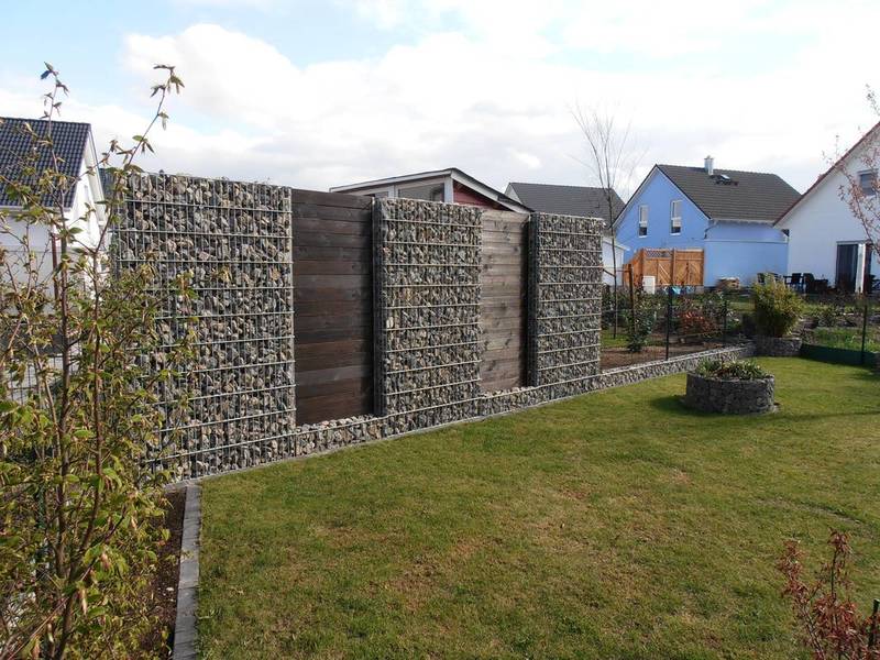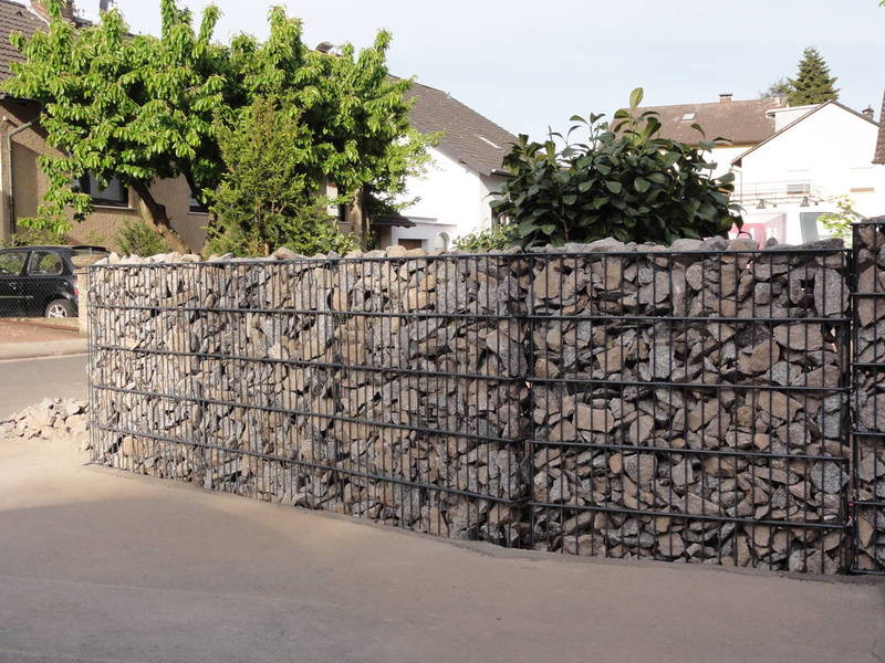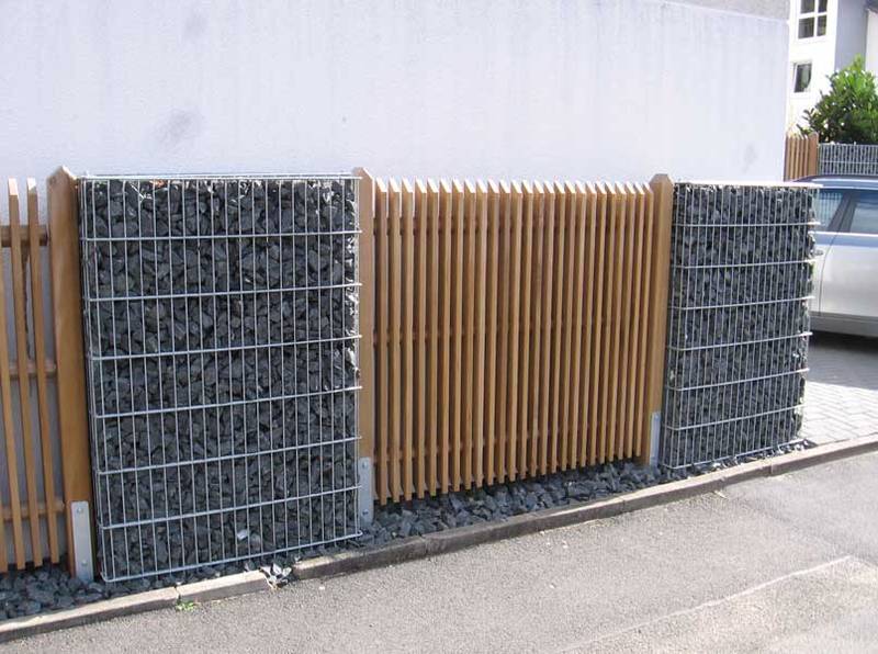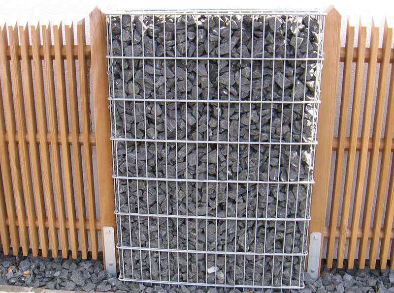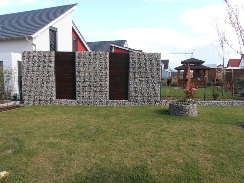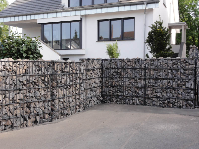 Die Gabionen sind mit oder ohne angeschweißte innenliegende Pfähle in den Größen 165 x 1100mm und 262 x 1010mm (Tiefe x Breite) erhältlich und in den Höhen von 0,60 bis 2,40 mtr. erhältlich. Durch die höchste Standsicherheit erreichen Sie eine optische Aufwertung, harmonische Eingliederung in das Landschaftsbild und setzen Akzente bei Haus und Garten.