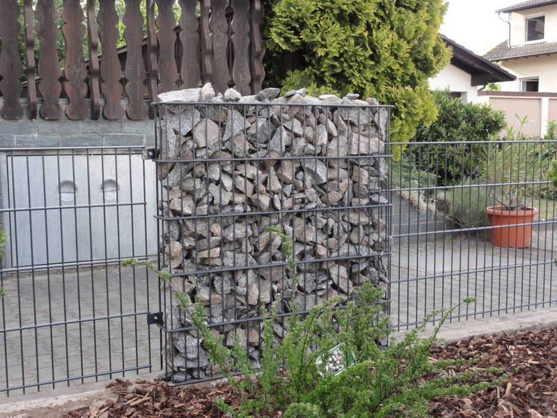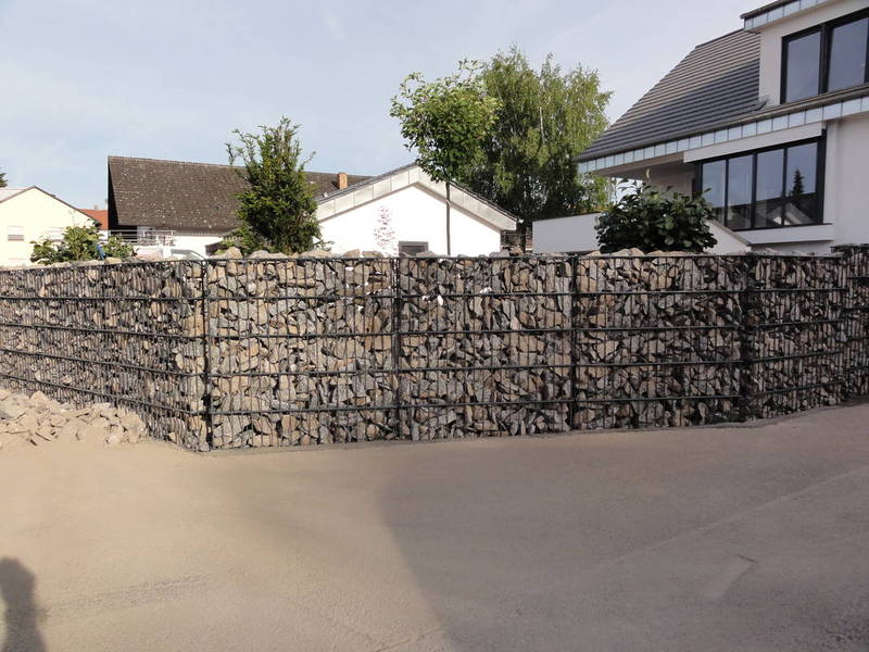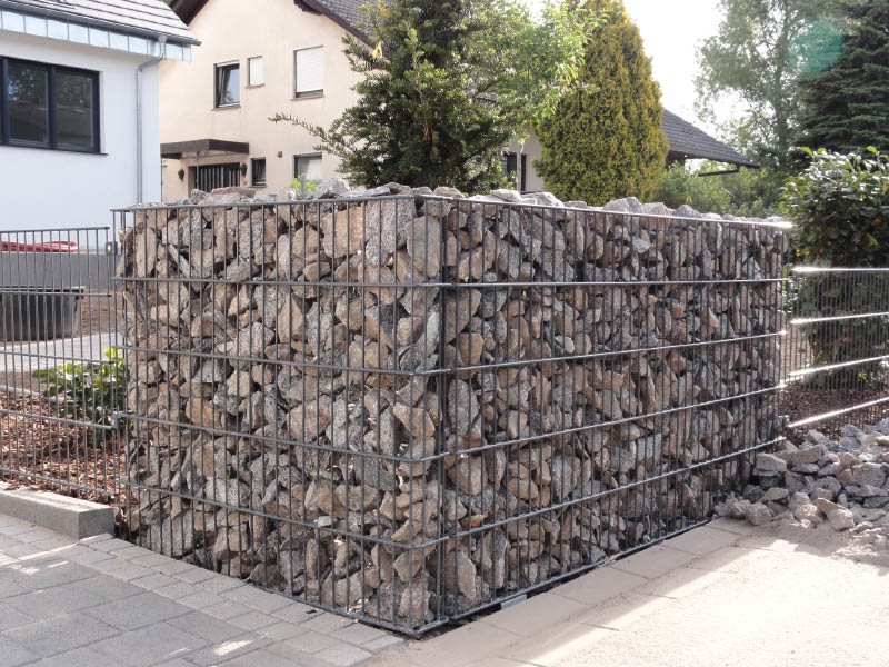 - Ausbildungen von Ecken oder Winkeln in einem Gitterkorb sind nach Angabe möglichhohe Standsicherheit durch die Möglichkeit von integrierten Pfosten oder Bodenplatten