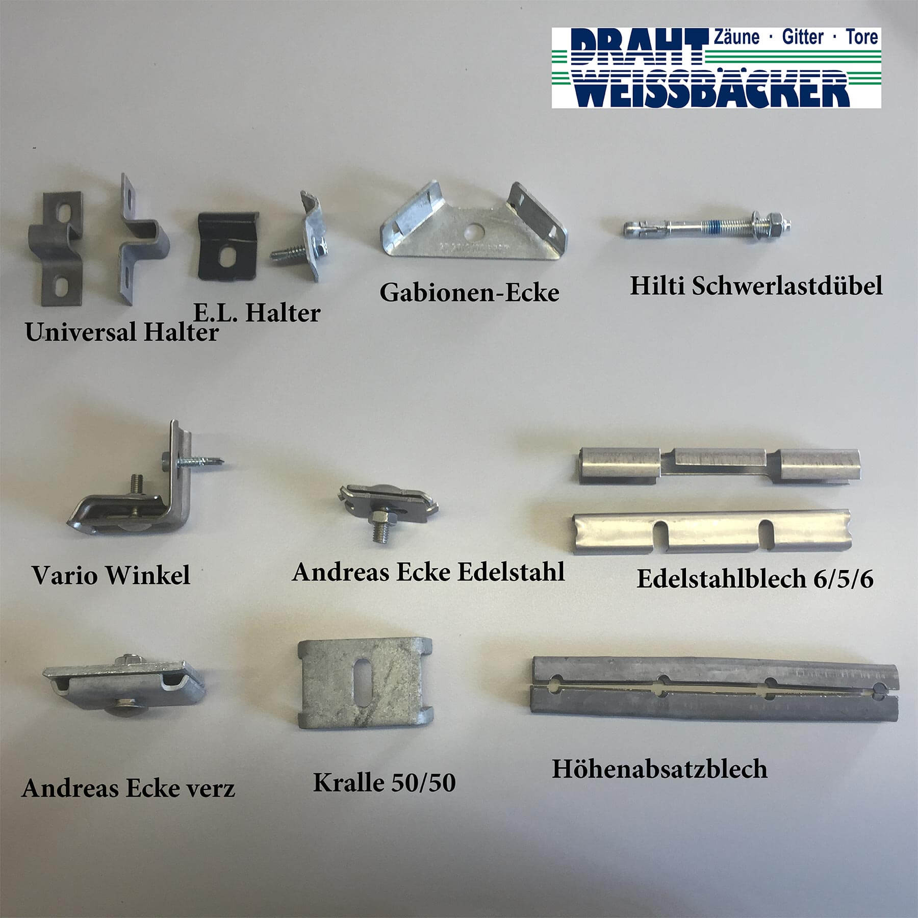 - Edelstahlbleche für Doppelstabgitter 8/6/8 oder 6/5/6 zum Verbinden von Gittermatten untereinander